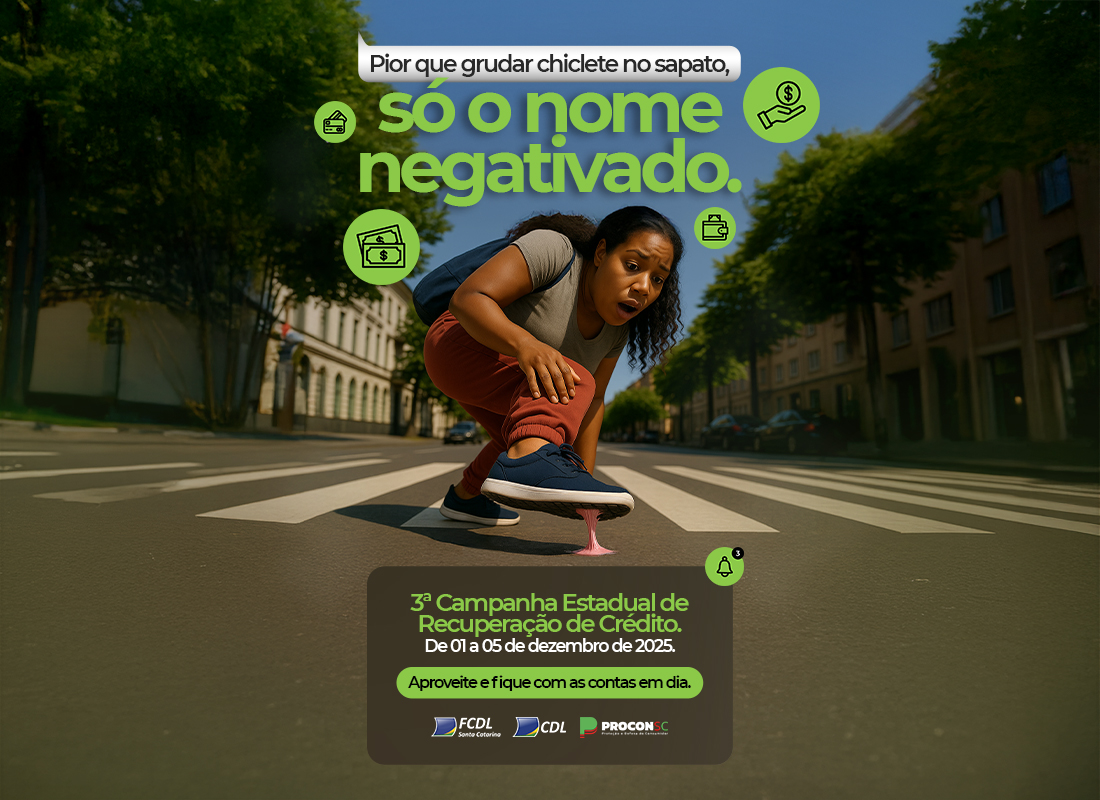 Começa nesta segunda-feira (1) a 3ª Campanha Estadual de Recuperação de Crédito, uma iniciativa promovida pela Federação das Câmaras de Dirigentes Lojistas (FCDL) com apoio do PROCON/SC. O evento dura até sexta-feira (5) e permite que consumidores inadimplentes renegociem suas dívidas junto às câmaras de dirigentes lojistas municipais.