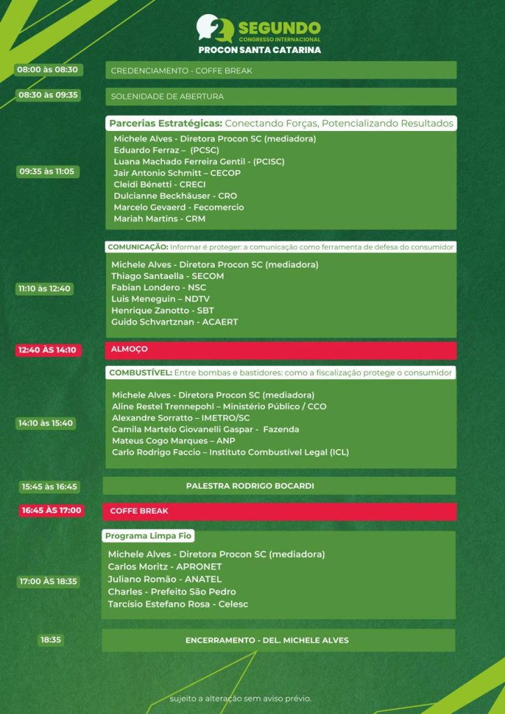 O PROCON/SC realiza na próxima quinta-feira, dia 12 de março, o II Congresso Internacional que vai debater diversos assuntos de interesse do consumidor. Estarão presentes autoridades, estudantes, especialistas e consumidores.